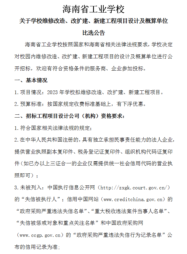 开云手机在线登入关于开云手机在线登入维修改造、改扩建、新建工程项目设计及概算单位比选公告