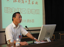 11月5日,我校在多功能报告厅举行了班主任管理工作培训会,主要内容是“班主任如何对学生进行日常行为规范的教育”。 党委书记蒋培福校长、王人辉副书记和李芳伟副校长出席了培训会,并分别在会上作了讲话。全体班主任和副班主任参加了培训会,学生科副科长林鸿伟主持。 这是班主任管理工作培训会的第一讲。主要强调了日常行为规范教育的作用和意义、分类与内容;如何促进学生日常行为习惯的养成、常见违规行为的预防及教育的对策等。 对学生进行行为规范教育,是开云手机在线登入为实现培养目标,使学生的外在行为符合社会道德标准,并使学生具有良好的心理素质,具备奋发进取精神所进行的教育活动。它为培养学生成为合格的毕业生,进而成为合格的公民有着非常重要的作用和深远意义。 陶海林老师从观念形成态度,态度决定一切谈起,强调要让学生形成良好的思想观念;从小事做起,树立信心;先做人,后做事。同时,作了增强班级集体荣誉感的经验介绍。 刘建兵老师从以师爱激励学生进步着手,劝告不能因为差生学习不好或表现不好而放弃对他们的培养与转化,而要以爱心抚慰后进生的心灵,以诚心赢得后进生的信任,以耐心期待后进生的转化,并争取家长的支持和配合。 日常行为规范教育是反映班主任按照职业技术开云手机在线登入学生日常行为规范的要求,采用行为引导的方法对学生进行日常行为规范的训练,使学生养成良好行为习惯的一种教育。 会后,蒋培福校长作了总结。他指出,开展这样的培训会是必要的,班主任工作应常抓不懈,班主任的素质决定着一个班级的 精神面貌。当不好班主任,就当不好老师。 蒋校长强调,要重视对学生日常行为规范的教育。它是学生自我成长的需要;是学生成才、就业的需要;是构建和谐社会的需要。他指出,做人与做事并不矛盾。企业选用一个人,更重要的是看他是不是文明守纪、吃苦耐劳,是不是具有优良的团队精神,从某种意义上说,做人比做事更重要些。 最后,他强调了班风建设的重要因素:班主任的人格力量;抓班委、团支部建设;树立正气,杜绝坏的风气蔓延;注意抓小事。