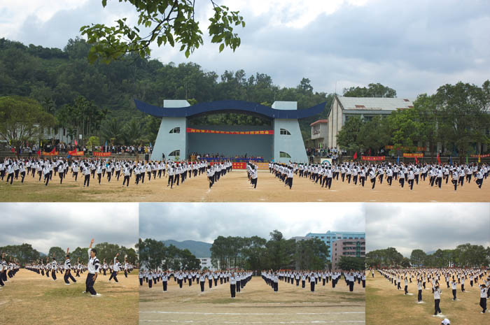 这一年对于我校来说也是极不平凡的一年,我校在海口新区的塔岭工业园区全面启动了占地面积300亩的新校区建设,第一期约5万多平方米的基础建设即将完工,2000多名师生将于下学期入住新校区。最近省教育厅又批准我校组建工业职教集团,进一步扩大我校与企业和市县职教中心联合办学的规模。实现了职教办学连锁化,集团化。这一切标志着我校已进入了一个飞跃发展的时期。在这欢欣鼓舞的日子里,我们经过充分的准备,期待已久的第十七届校运会如期在这里举行了